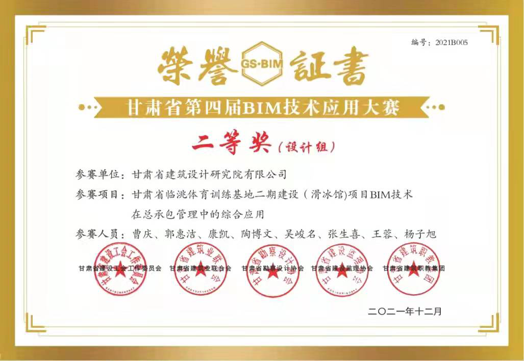 日前,甘肅省建設工會工作委員會、甘肅省建筑業聯合會、甘肅省勘察設計協會、甘肅省建設監理協會、甘肅省建筑職教集團聯合舉辦的“2021年甘肅省職工職業技能競賽暨甘肅省第四屆BIM技術應用大賽”評選結果揭曉,甘肅省城鄉規劃設計研究院有限公司“BIM技術正向設計在蘭州中川國際機場三期擴建工程航站區附屬用房工程項目中的應用”獲得“BIM技術應用作品征集”比賽設計組一等獎;甘肅省建筑設計研究院有限公司“甘肅省臨洮體育訓練基地二期建設(滑冰館)項目BIM技術在總承包管理中的綜合應用”獲得二等獎,“緣善智慧港BIM項目”獲得三等獎;甘肅省建設監理有限責任公司李燕燕獲得“BIM技術技能比賽”三等獎。