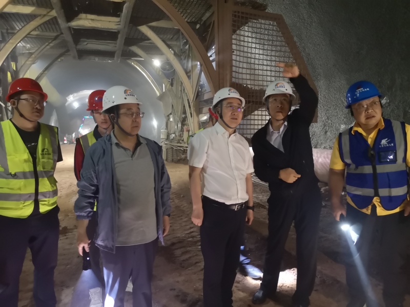 白鑫一行深入工程施工現(xiàn)場及項目駐地,詳細查看了董嶺一號隧道900米處掌子面安全生產(chǎn)情況,檢查了項目駐地檢測試驗室操作規(guī)程、工藝流程落實情況及危化品貯存使用情況,了解了工作人員生產(chǎn)、生活保障情況,聽取了總監(jiān)辦工作匯報。
