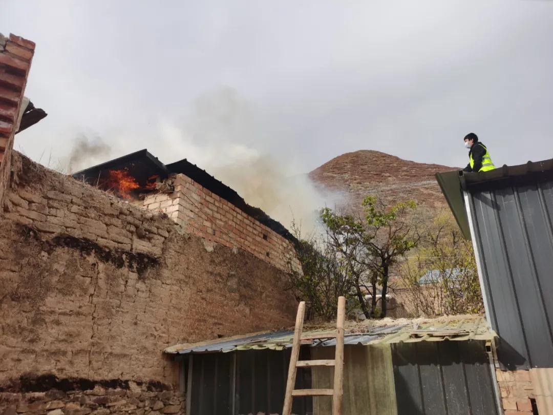 10月30日下午3點,交通監(jiān)理公司負(fù)責(zé)幫扶的臨潭縣洮濱鎮(zhèn)馬旦溝村一戶村民家中突然冒出滾滾濃煙,火光在濃煙中忽隱忽現(xiàn)。著火是一座磚木結(jié)構(gòu)彩鋼屋頂?shù)男路浚饛奈蓓敓穑綗酵V鸬姆课菖赃叾逊胖嗄甑睦喜窕穑稍锂惓#唤z火星就能點燃,而與著火點緊鄰著的就是布局緊密的鄉(xiāng)親們的房屋,再往外圍則緊接著山林,如果火勢蔓延,后果將不堪設(shè)想。