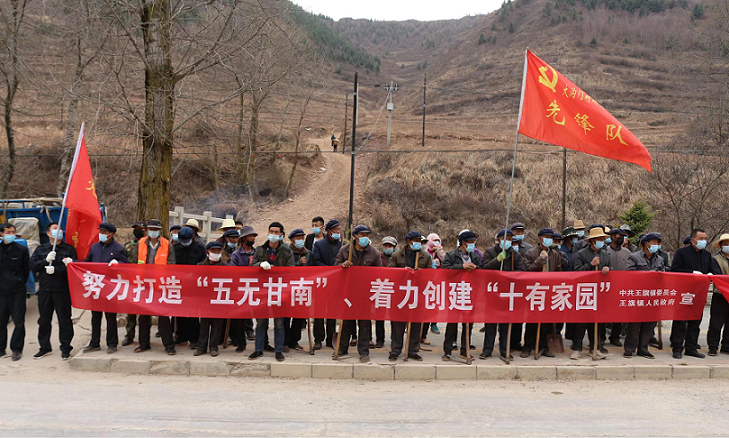 2022年4月,根據(jù)王旗鎮(zhèn)安排,駐村幫扶工作隊(duì)員會(huì)同其他鎮(zhèn)村干部組織群眾數(shù)十人,在洮河西岸磨溝段開(kāi)展了以“黨旗高擎、黨徽常耀、綠色出行、保護(hù)環(huán)境”為主題的義務(wù)植樹(shù)活動(dòng),共栽下4000余棵松樹(shù)苗,掀起了植樹(shù)造林的熱潮。