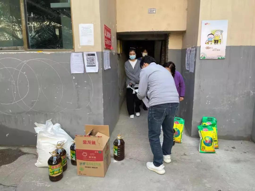 11月2日,封閉管控的蘭運(yùn)司家屬院居民收到了平?jīng)雎飞鐓^(qū)發(fā)放的米面油和蔬菜。因?yàn)槭抢吓f小區(qū),居住的大多數(shù)是年邁的老人,再加上社區(qū)工作人員人手不足,物資登記、發(fā)放都成了難題。正在發(fā)愁不能為疫情防控工作做點(diǎn)什么的張晶晶和黃昊兩口子,立即加入了志愿者行列。他們挨家挨戶地登記、發(fā)放物資,把米和面一袋一袋的扛到不方便下樓的老人家里。汗水順著他們的臉頰流淌,他們卻來不及休息,不停的穿梭在各個(gè)樓道之間,只為把物資盡快送到居民手上。一位大爺握著黃昊的手,一直說著感謝的話。黃昊卻笑著說:”大爺,不用客氣,咱們是鄰居,有需要的您盡管吩咐。”