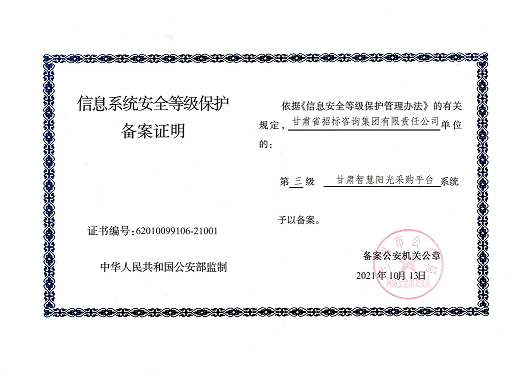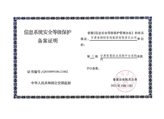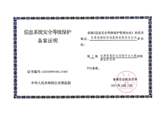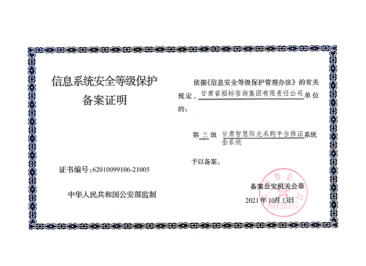 近日,由招標(biāo)咨詢集團(tuán)負(fù)責(zé)開發(fā)建設(shè)的甘肅智慧陽光采購平臺系統(tǒng),以及甘肅智慧陽光采購平臺采購網(wǎng)系統(tǒng)、大數(shù)據(jù)監(jiān)管系統(tǒng)、招標(biāo)系統(tǒng)、保證金系統(tǒng)、專家管理系統(tǒng)通過國家三級等保認(rèn)證,系統(tǒng)管理安全能力獲得業(yè)界最高標(biāo)準(zhǔn)。