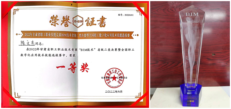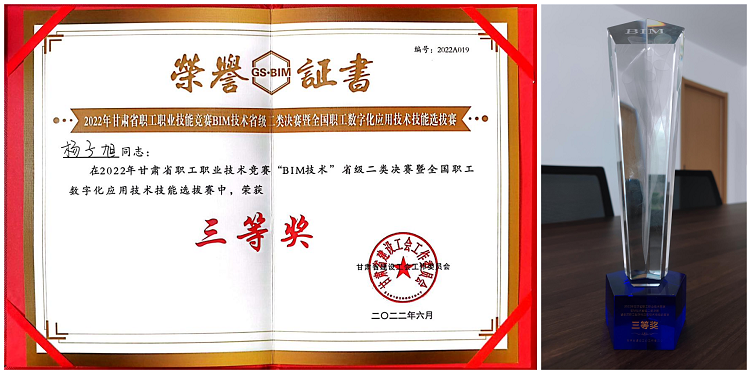 近日,在甘肅省職工職業(yè)技能競賽“BIM 技術(shù)”省級(jí)二類決賽暨全國職工數(shù)字化應(yīng)用技術(shù)技能選拔賽中,甘肅省建筑設(shè)計(jì)研究院有限公司榮獲優(yōu)秀組織獎(jiǎng),選送的參賽選手陳文杰和楊子旭分別榮獲一、三等獎(jiǎng)。