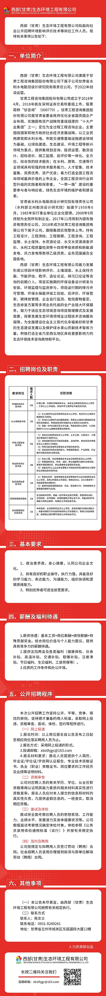 甘肅省水利水電勘測設計研究院有限責任公司——西部(甘肅)生態環境工程有限公司招聘公告