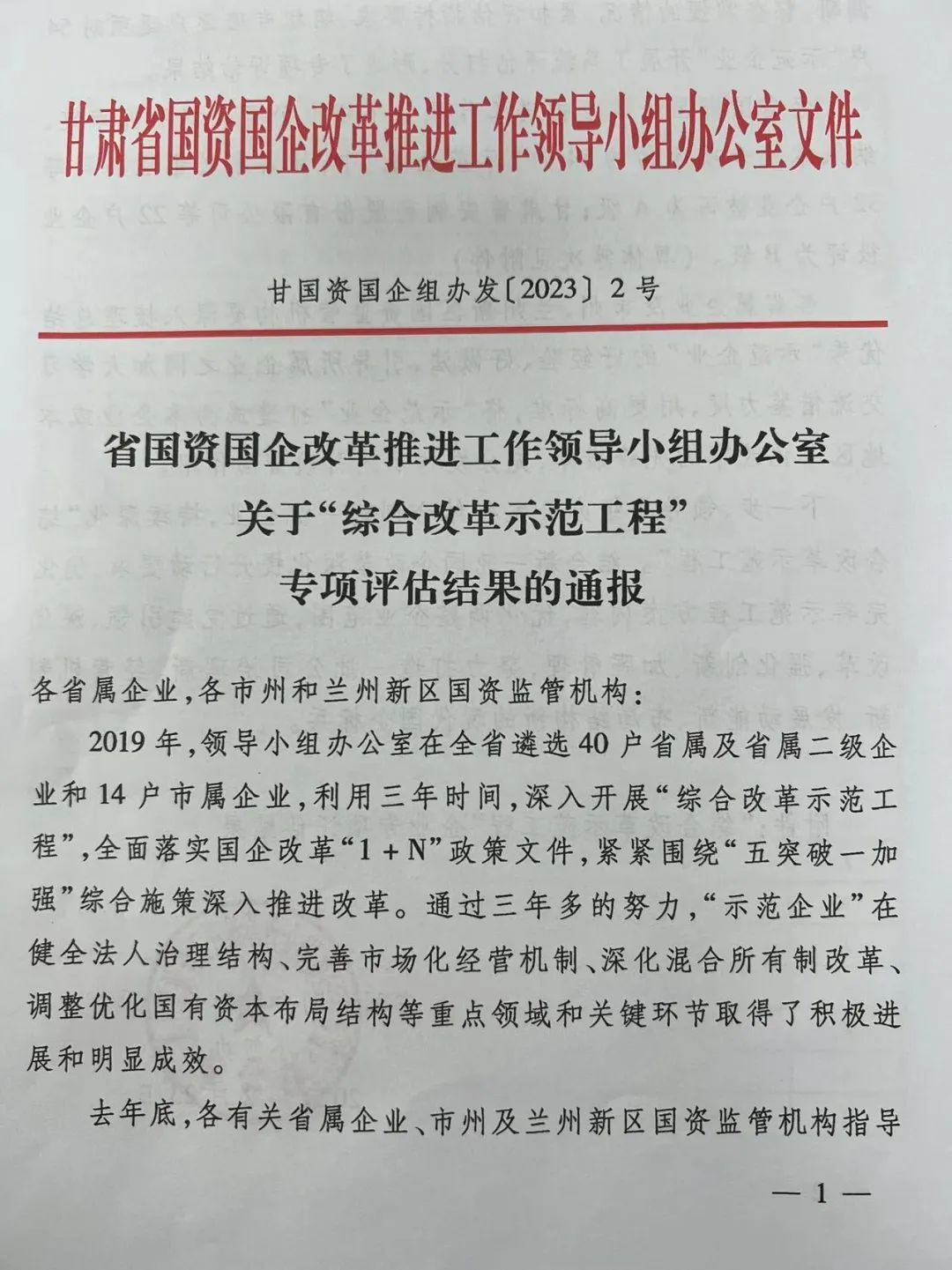 甘肅工程咨詢集團深入開展“綜合改革示范工程”,全面落實國企改革“1+N”政策文件,緊緊圍繞“五突破一加強”綜合施策深入推進改革。經過三年多的努力,集團公司5戶“示范企業”在健全法人治理結構、完善市場化經營機制、深化混合所有制改革、調整優化國有資本布局結構等重點領域和關鍵環節取得了積極進展和明顯成效。